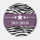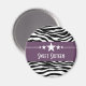 Trendy and modern Stars Zebra Print Sweet Sixteen Magnet featuring a chic black and white zebra print background and a bold purple border adorned with a fun star motif. This girly magnet is a hip and stylish choice for a fun sweet 16 party favour. Easy to customise, simply add party details in the text fields provided. Click "Customise It" to find more personalisation options.