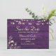 Illuminate the path to your special day with our enchanting rustic wood purple save the date invitation. Adorned with exquisite faux gold gilded floral lace and delicate string lights, this invitation captures the essence of romance and elegance. Ideal for fall or winter weddings, it sets the tone for a celebration filled with warmth and charm. Make your love story shine with this modern yet timeless design.