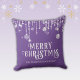 Purple and white string lights sparkles Christmas throw pillow with a cute whimsical fun festive Holiday gift.