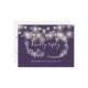 A purple RSVP card featuring pretty string lights, hand-drawn floral garland and chic typography. The reverse features your details and a fun guest song request. Designed by Thisisnotme©