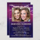 Graduation party invitation featuring your own photo on a dark blue purple wood background with festive string lights. Purple is the colour of wisdom, which makes it perfect for a graduation. I created this invitation for a twin graduation, but of course you can also use it for one person or any other occasion!