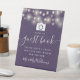 Featuring pretty string lights, this elegant purple script minimalist photo guest book sign is perfect for all celebrations. Designed by Thisisnotme©