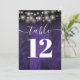 Purple String Lights Rustic Barn Wood Table Number