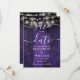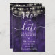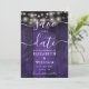 This elegant purple string lights rustic barn wood boho wedding save-the-date card can be personalised with your information in chic typography. Designed by Thisisnotme©