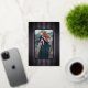 spider web border with purple stripe backgound. Original illustration by Becky Nimoy. Add a photo on the back or a message.