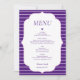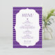 Add a chic and contemporary touch to your reception tables with this Purple Striped Wedding Menu Flat Card. Featuring bold yet elegant purple stripes that frame your carefully curated menu, this design creates a striking visual statement while maintaining a sophisticated feel. The clean layout highlights each course in an easy-to-read format, guiding your guests through the dining experience with style. Printed on premium-quality cardstock for a luxurious finish, this flat card perfectly complements weddings with purple colour palettes or modern themes, helping you create a cohesive, polished tablescape that leaves a lasting impression.