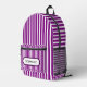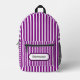 Backpack stripe design that you can customise with any text of your choice. Should you require any help with customising then contact us through the link on this page. Purple stripe design personalised backpack