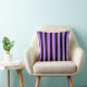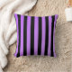 A decorative throw pillow with a purple gradient and black striped pattern.