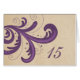 Sweet and elegant Stylish Swirls Wedding Table Number Card featuring a lovely kraft paper look background and a pretty flourish swirl design in purple. This modern yet rustic table number card is easy to customise with the appropriate table number(s). Click "Customise It" to find more personalisation options.