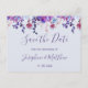 These save the date cards feature watercolor purple succulents and plants. They are part of a collection which includes a full range of matching wedding invitations and stationery such as reply cards, information cards, address labels, stickers, programs and much more. Please visit the collection pages in our store to see the full range of items that you can personalise for your wedding.