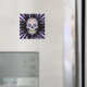 Purple Dia de los Muertos sugar skull with flowers, heart and diamond.