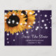 These rustic wood wedding save the date postcards featuring sunflowers on a purple barn wood background are ideal for a purple rustic wedding party inspired by sunflowers.