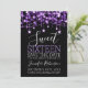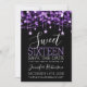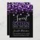Purple & Black Sweet 16 Birthday Sparkly String Lights "Save the Date" announcement template with party address and RSVP details.