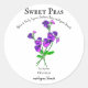 Purple Sweet Peas Flowers Art with Text Classic Round Sticker