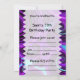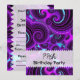 Birthday Party Invitations with a a funky hippy style swirl fractal art pattern in different shades of purple.