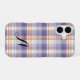 This phone case showcases a stylish purple tartan plaid pattern accented with orange and green lines. Featuring a customizable monogram, it blends classic charm with a personal touch, making it perfect for daily use or as a thoughtful gift.