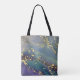 Purple, Teal and Gold Liquid Art Monogram Tote Bag