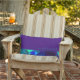 Stylish outdoor welcome pillow features an artistic abstract geometric design with custom welcome message. The top features a simple plain purple background with "welcome" presented in elegant stylised script. The bottom features a stylish abstract geometric pattern in a trendy colour palette; turquoise, blue and purple geometric shapes with teal, green and cobalt accents interlock to form an interesting colour block pattern. Reversible; the back also features the the abstract geometric pattern.