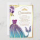 Purple Teal Dress Mermaid Tail Gold Quinceanera Invitation