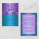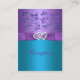 This pretty purple and turquoise blue floral wedding reception enclosure card has a purple PRINTED ribbon and a pair of PRINTED diamond jewels and FAUX glitter joined hearts on it that matches the wedding invitation shown below. You can use it as an accommodations or directions card, a gift registry or wishing well card, a wedding website or information card, or as a gift tag to attach to your wedding favours. If you re-size the card, or if you change fonts, or the size of the font, some of the text may get cut-off. Everything will print as you see it on your monitor. I will not see your card, and Zazzle will NOT correct anything (typos, mis-alignment etc.). The text is customisable. If you need help with this card, please email me BEFORE you place your order. If you require any other matching items, please email your request to niteowlstudio@gmail.com.