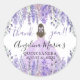 Add a whimsical and elegant touch to your party favours, candles, place settings, envelope closures, and more with this charming round sticker design! Featuring a lilac and lavender garden theme, it showcases delicate watercolor lavender stems in various shades of purple, paired with soft green leaves. At the bottom centre, a girl in a sparkling purple gown adds a regal and delightful touch. "Thank You" is beautifully written in purple script letters, creating a lovely balance of elegance and simplicity.