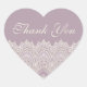 Wedding Thank You envelope seal heart stickers in elegant purple and cream off white lace like design, delicate and pretty, perfect for a purple theme. A great way to decorate wedding favours.