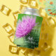 Close up (macro) photograph of a thistle, with the phrase Slàinte Mhath, which means "good health" or "cheers" in Scots Gaelic.