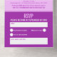 Bold simple graphic purple-pink tones and white photo template all-in-one 25th birthday invitation. Personalise this detachable milestone birthday invitation with your own birthday party event details, and three different photos of your birthday girl. Invite comes with a simple RSVP detachable reply card where you can also request a song to dance to or ask for any dietary or special requirements if required. Simple three photo side by side design for you to place your now and then photos. Other colours and matching items are available. © Original design by Sarah Trett for www.mylittleeden.com on Zazzle.