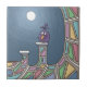 Colourful Kaleidoscope - Life in the city. Purple Tiki bird in the city under a full moon