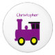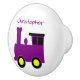 Add a bit of style to your cabinets and furniture in any room. This decorative ceramic knob with a train design will do just that. You can customise this knob with any text. Should you require any help with customising then contact us through the message link on this page. Ceramic knob for cabinets and furniture with a purple train design.