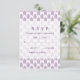 Trendy and stylish Tribal Arrows Wedding RSVP Card with a purple and white arrow pattern background. Easy to customise with your wedding details. For more customisation options, click on the Customise It button.
