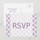 Trendy and stylish Tribal Arrows Wedding RSVP Postcard with a purple and white arrow pattern background. Easy to customise with your wedding details. For more customisation options, click on the Customise It button.