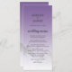 Elegant destination wedding menu with a tropical palm tree design on a bright purple background featuring elegant script and modern typography. The sunset purple fades onto a white background. Simply add your wedding details to this stylish tropical beach wedding menu. Exclusively designed for you by Happy Dolphin studio.