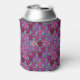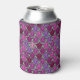 This can cooler has an art deco design of tulips from pentagons and trapezoids in different shades of purple.