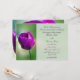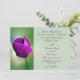 Wedding invitations with a pretty purple tulip flower against a green background. Photo taken in the UK.