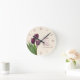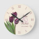 Three rich dark burgundy purple tulip flowers on a cream background with green leaves, and customisable names and date for an anniversary gift, particularly a ruby wedding. The clock has matching numbers in burgundy coloured Roman numerals. You can also replace the background image with a photograph of the happy couple.