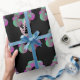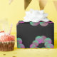 Rings of purple-turquoise shaded bubbles on a black background. You can easily change the background colour by clicking on the "customise" button.