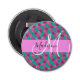 Girly and glam purple, lilac, aqua, turquoise and green mermaid glitter sparkles monogram name and initial bottle opener. Your custom name and monogram are written in an elegant hand lettered script with a pink background. A perfect birthday or Christmas gift!