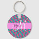 Girly and glam purple, lilac, aqua, turquoise and green mermaid glitter sparkles monogram name and initial keychain. Your custom name and monogram are written in an elegant hand lettered script with a pink background. A perfect birthday or Christmas gift!