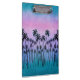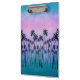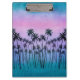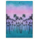 Silhouettes of palm trees on an artistic background in shades of purple and turquoise. Many more products with this design available.