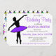 Invitation features an original marker illustration of a silhouetted ballerina in a neon purple tutu, with colourful silhouetted dancers on the back side. Simply personalise with your information for a unique dance-themed birthday party invitation.