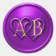 Purple Two Hearts Intertwined Monogram Wedding Classic Round Sticker