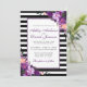 Watercolor Purple Ultra Violet Floral and Black & White Stripes Wedding Invitation Card - Purple Script - Striped Back