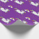 A cute, fantasy wrapping paper with a pattern of adorable little tubby white unicorns leaping across a purple sky. They have rainbow coloured tails and manes and rainbow horns, and are surrounded by rainbows, clouds and gold stars. An ideal gift wrap for kids.