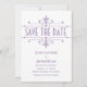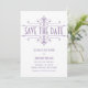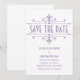 Simple and elegant Fancy Ornamental Save the Date Announcement in purple and white featuring a sophisticated art deco style ornamental flourish border. Easy to customise, simply add your wedding details in the text fields provided. Click "Customise It" to find more personalisation options.