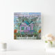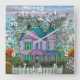 Purple Victorian House Pumpkins Wagon Autumn Square Wall Clock