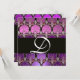 PURPLE VIOLET BLACK DAMASK CARNATIONS MONOGRAM INVITATION