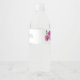 Pastel watercolor peony flowers bouquet together with your name / names and event's date making an inspired personalised water bottle label for your wedding or other celebrating event.