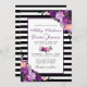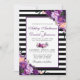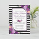 Purple Ultra Violet Watercolor Floral and Black & White Striped Wedding Invitation Card