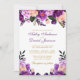 Watercolor Ultra Violet Purple Floral and Gold Wedding Invitation